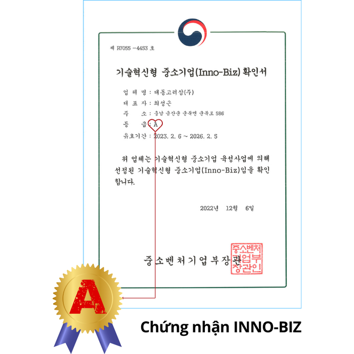 - No. 10-1106487: Phương pháp thúc đẩy ginsenoside Rg3 Rh2 trong chiết xuất nhân sâm cô đặc
