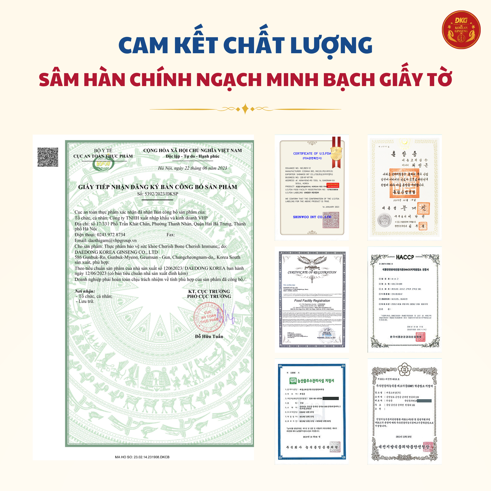 6. Tên và địa chỉ cơ sở sản xuất sản phẩm: DAEDONG KOREA GINSENG CO., LTD. Địa chỉ: 586 Gunbuk-Ro, Gunbuk-Myeon, Geumsan – Gun, Chungcheongnam-do,, Korea South.