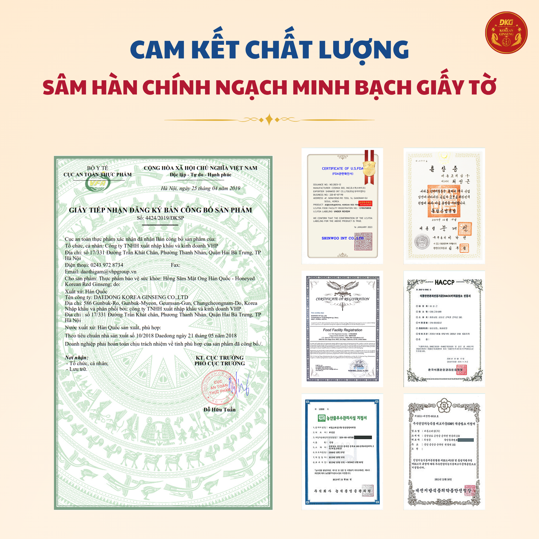 6: Tên và địa chỉ cơ sở sản xuất sản phẩm: DAEDONG KOREA GINSENG CO., LTD. Địa chỉ: 586 Gunbuk-Ro, Gunbuk-Myeon, Geumsan – Gun, Chungcheongnam-do, Korea South.